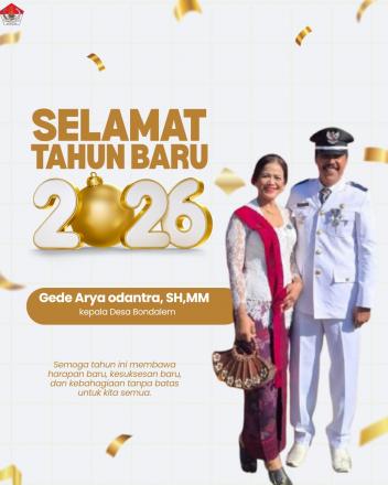 Kami segenap Pemerintahan Desa Bondalem mengucapkan Selamat Tahun Baru 2026. Semoga di tahun yang baru ini membawa kebahagian, kesehatan, kedamaian, kesuksesan dan kemakmuraan bagi kita semua. Mari kita sambut tahun 2026 dengan semangat baru untuk bersama- sama membangun Desa kita tercinta menjadi lebih baju dan sejahtera. Begitu juga dengan pelayanan dan kinerja kami 'Pemerintahan Desa Bondalem' di tahun 2026 semoga dapat lebih baik lagi dari tahun sebelumnya.
