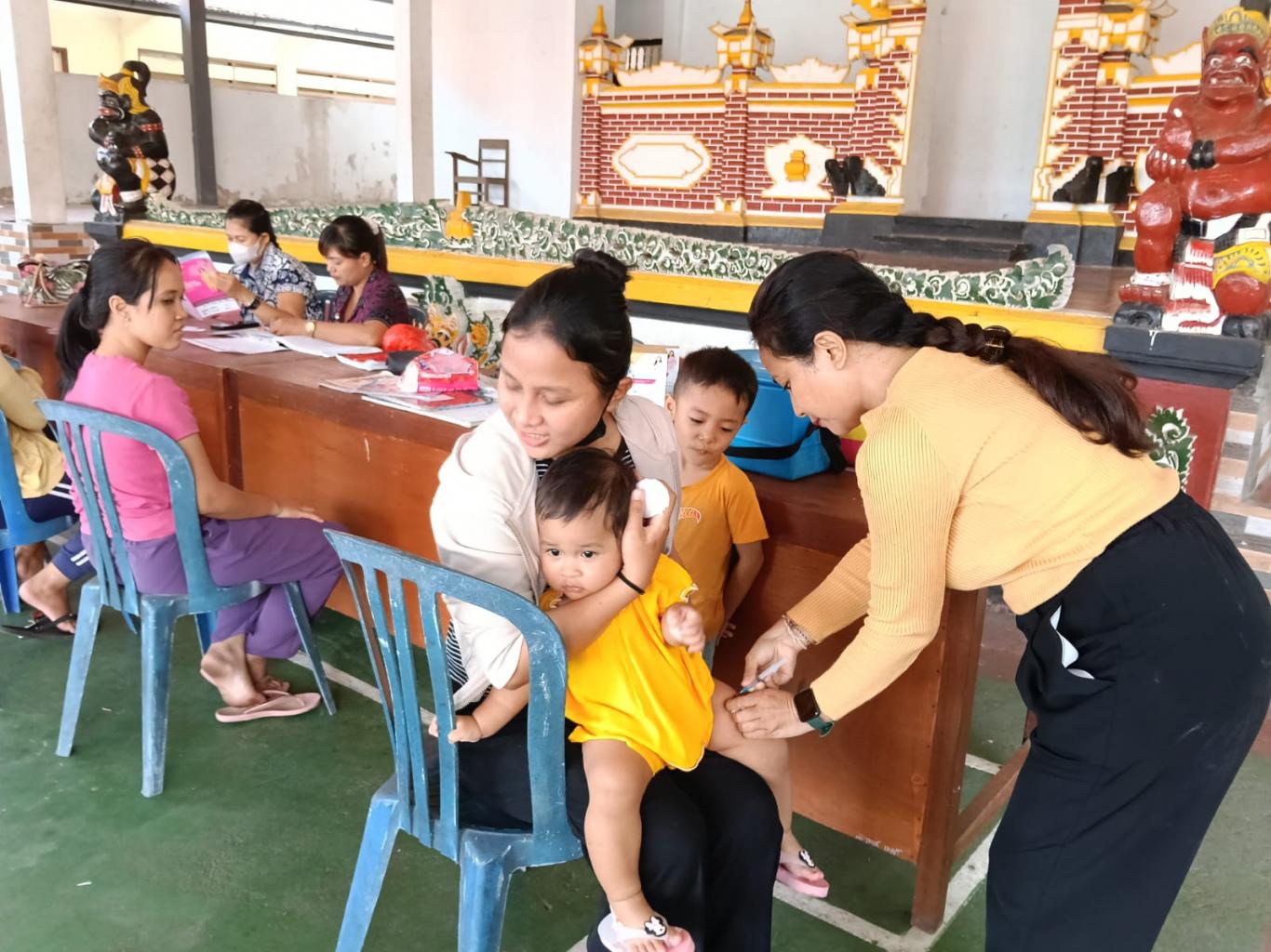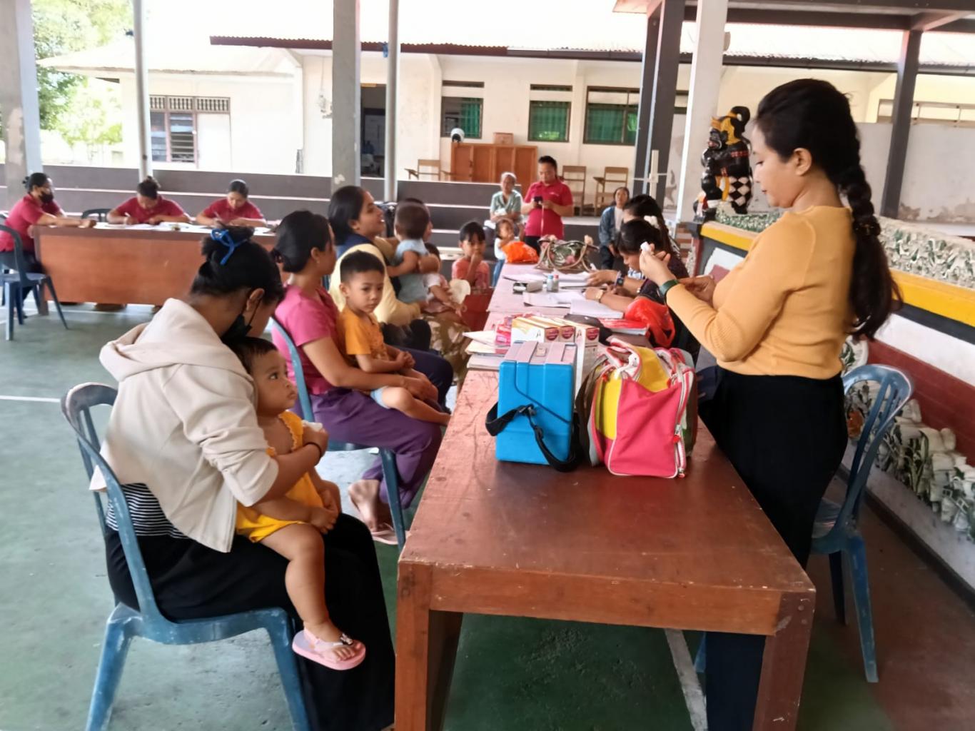 Imunisasi, pengecekan berat badan, tinggi badan, serta mengukur lingkar kepala bayi dan balita, pemberian Vitamin A dan Obat cacing untuk bayi dan balita, pemeriksaan ibu hamil meliputi pengecekan tekanan darah, pemberian makanan tambahan (PMT) bagi bayi dan balita serta susu bagi ibu hamil sebagai upaya pencegahan stunting.