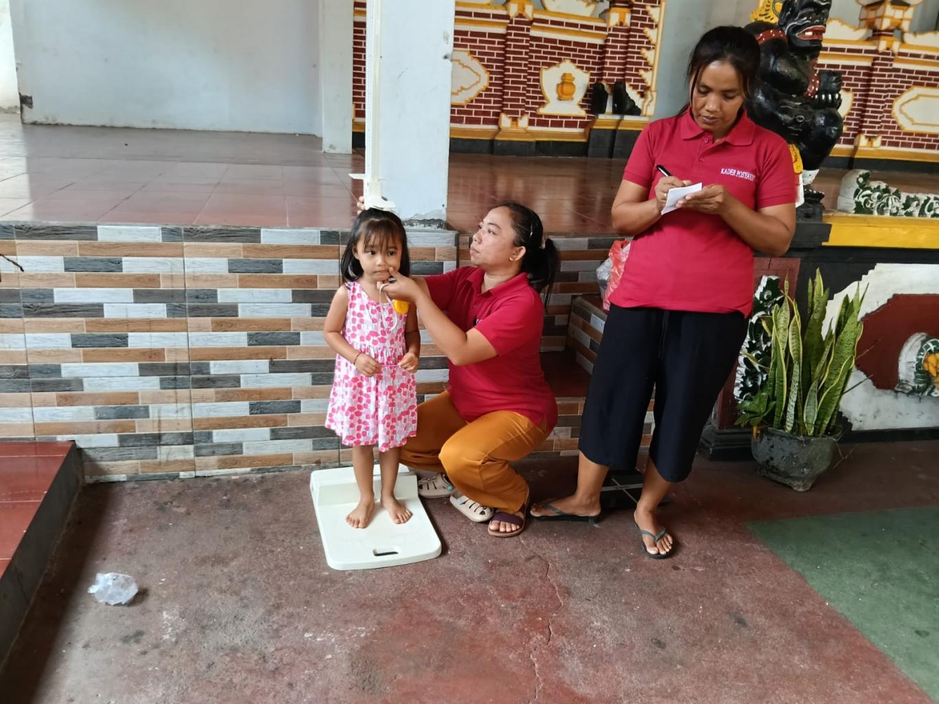 - Pengecekan berat badan, tinggi badan, serta lingkar kepala bayi dan balita